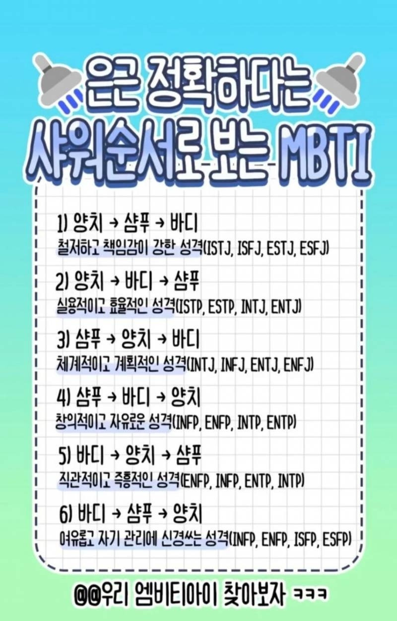 은근 정확하다는 샤워 순서로 보는 MBTI