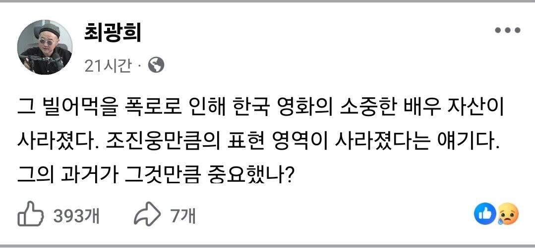 한국 영화의 소중한 배우 자산이 사라졌다는 영화평론가