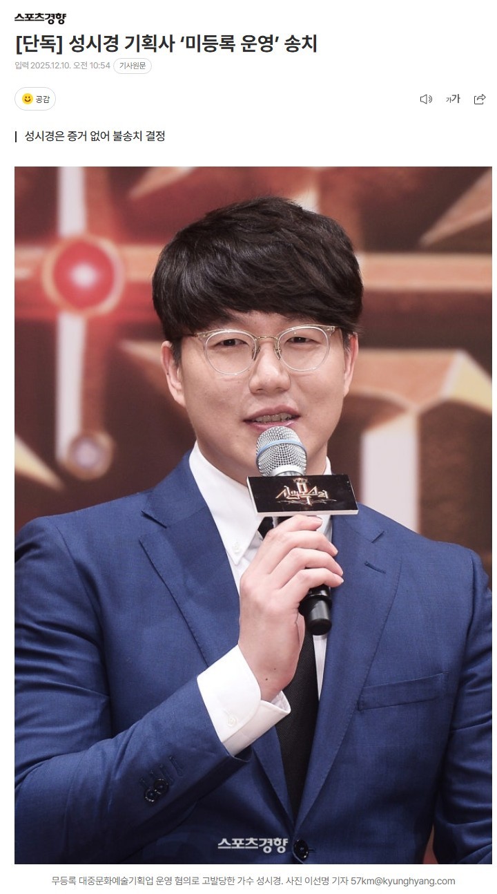 성시경 기획사 ‘미등록 운영’ 송치