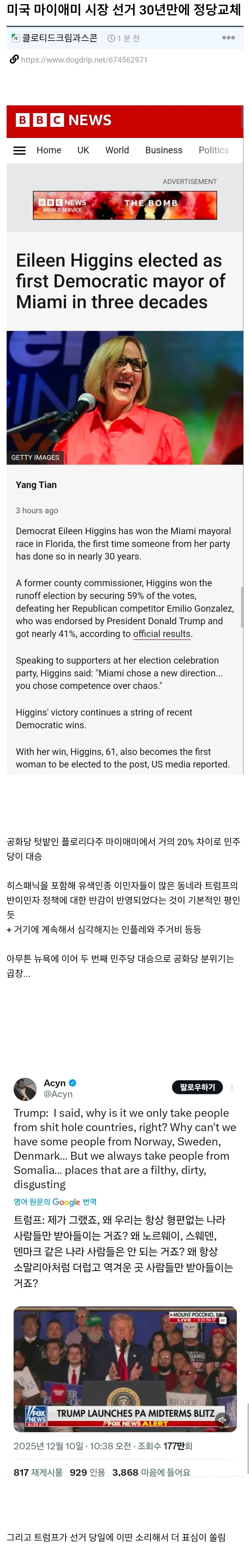 마이애미 시장으로 민주당 후보 당선... 30년 만의 정당교체