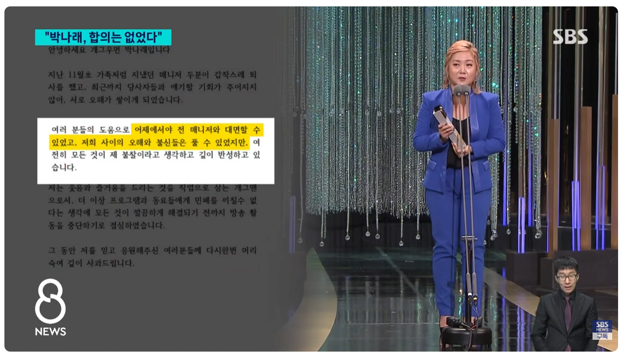박나래 전 매니저 "주사이모 논란은 100개 중 하나에 불과"