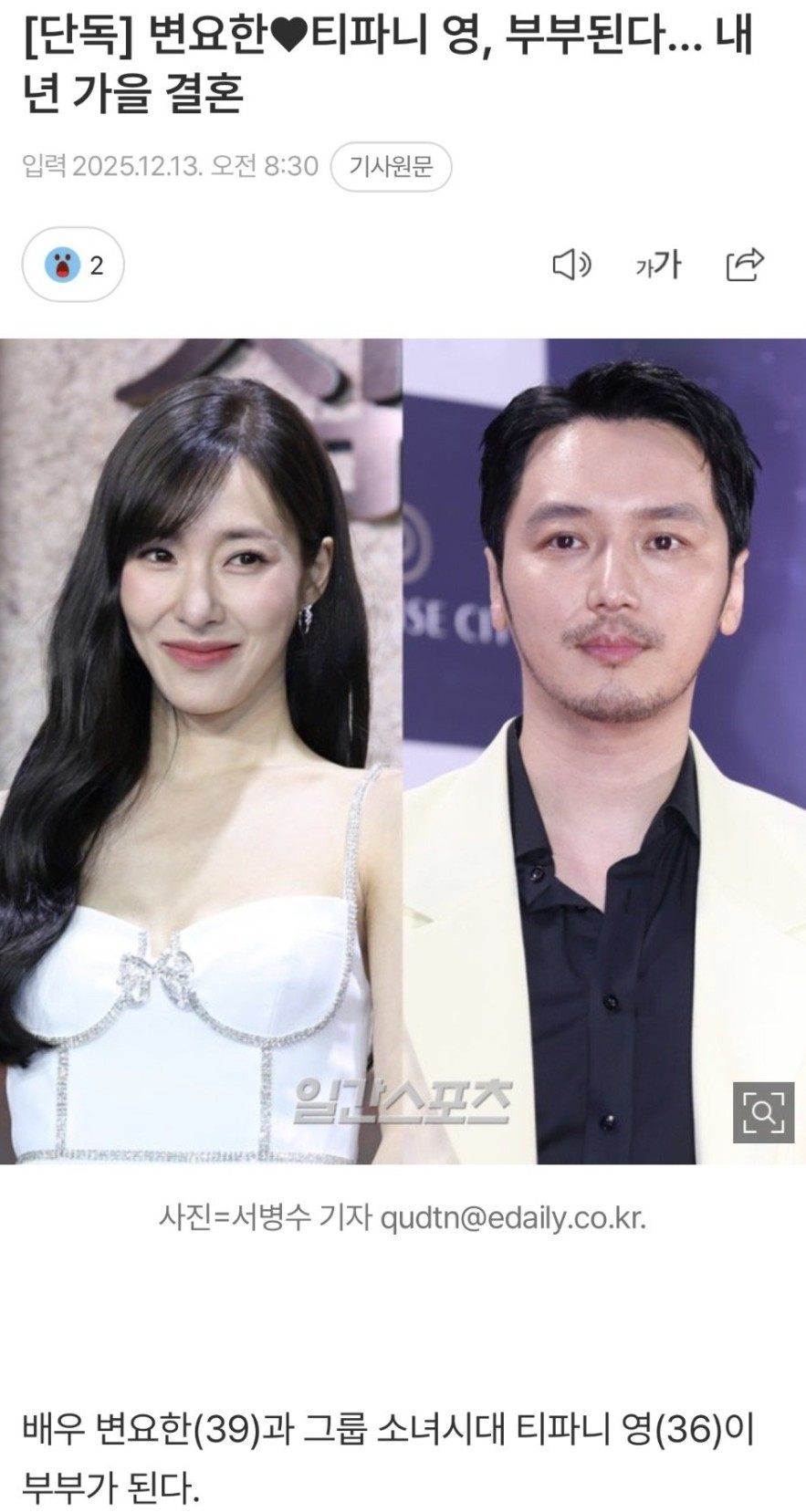 변요한 & 티파니 영, 부부된다… 내년 가을 결혼