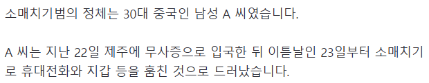 무사증 중국인 4일간 9명 소매치기.. 해외 결제도