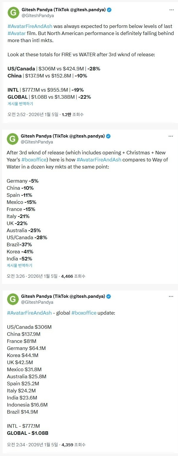 한국 -41%는 관객도 줄었지만 환율 때문에 어쩔수 없음 그래도 특별관 중심으로 흥행 잘되는편