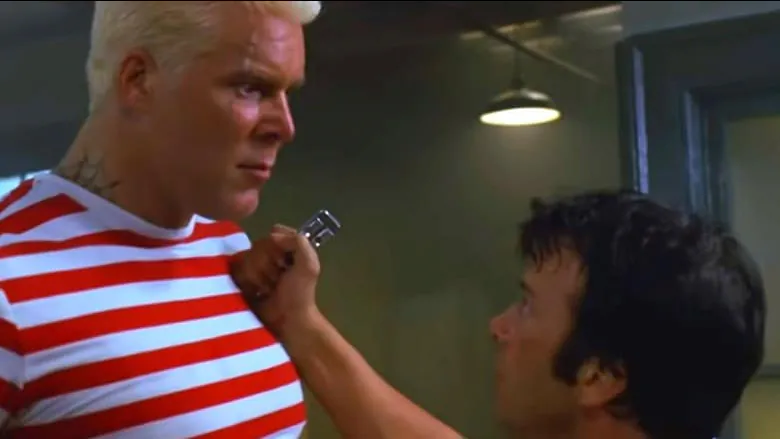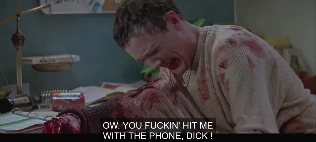 '스크림'에서 스튜어트가 빌리에게 전화기를 던지는 씬은