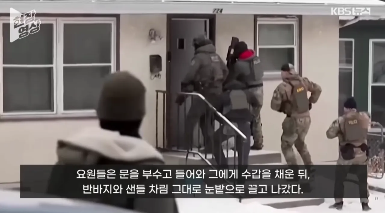 이것은 ICE가 혐의나 설명 없이 미국 시민을 잘못 구금한 최근 사건 목록의 최신 사례입니다. 이번에는 총을 겨눈 채 영장을 제시하지 않고 문을 부순 후 그를 구금한 쫑리 스콧 타오(Chongly Scott Thao) 씨에게 일어났습니다. 영상에는 요원들이 그를 담요와 속옷만 걸친 채 추운 날씨로 끌어내는 모습이 담겨 있습니다.