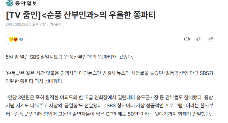 순풍산부인과는 다들 알다시피 '한국 시트콤의 레전드'라 불리며 엄청난 시청률을 기록했다.