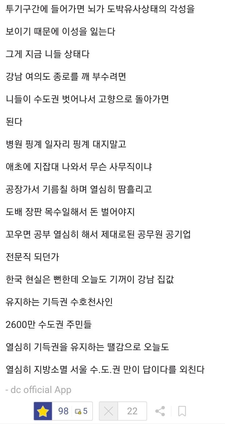 입으로만 지방소멸 외치는 아가리충 뼈때리는 글
