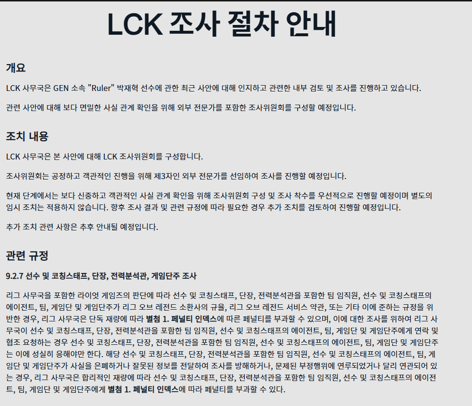 LCK 룰러 조사시작 ㄷㄷㄷ