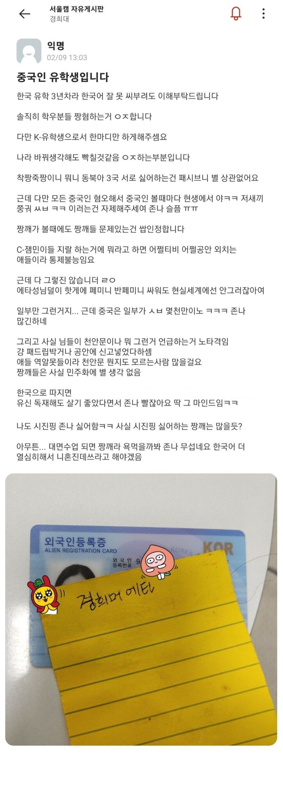 짱혐 ㅇㅈ한다는 중국인 유학생 누나