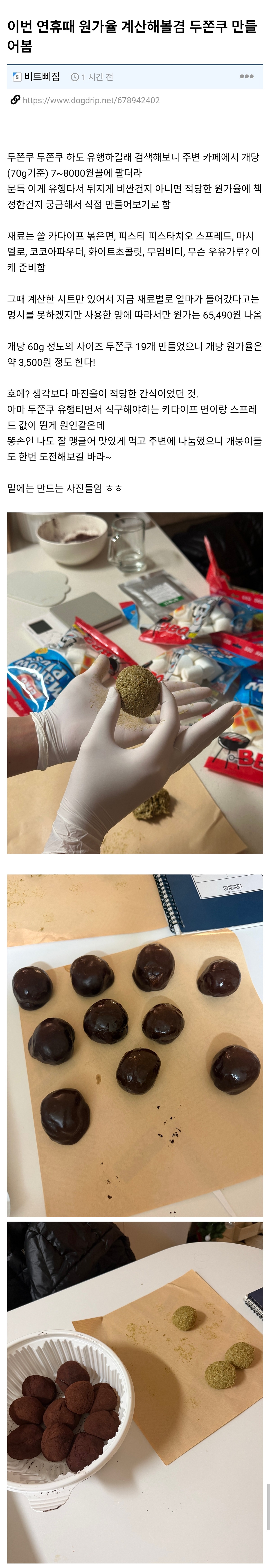 이걸로 두쫀쿠 60g 19개가 만들어짐