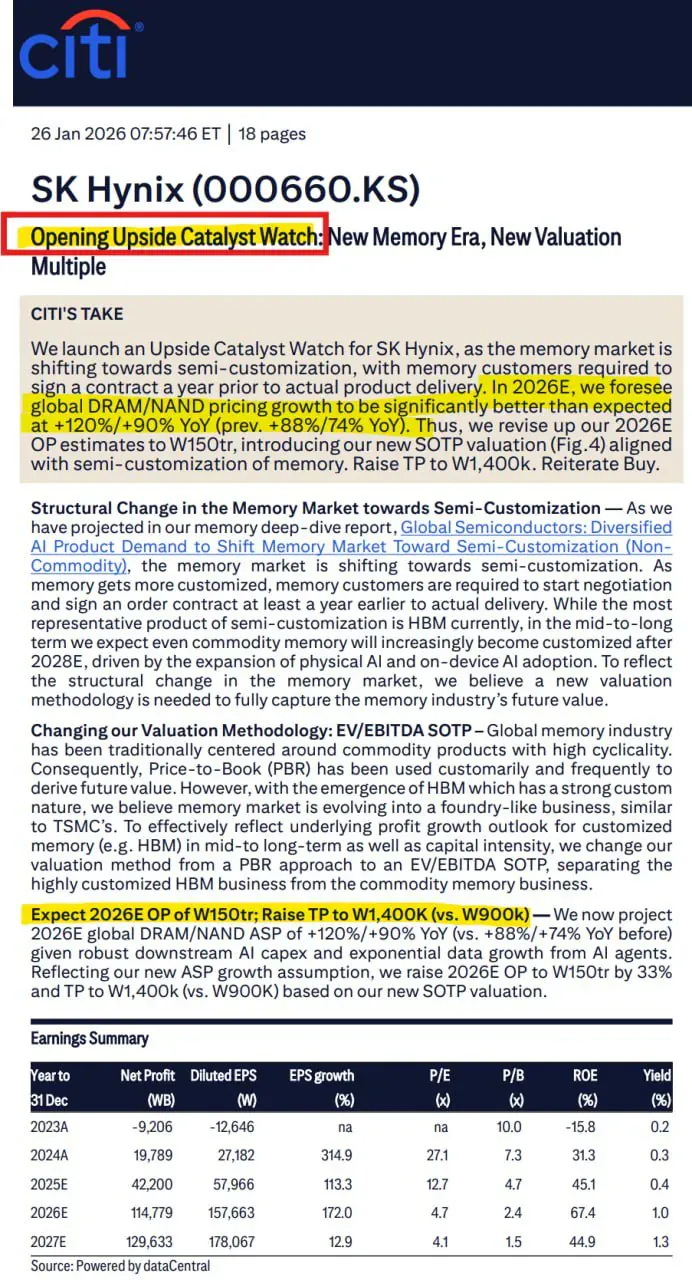 씨티 : 하이닉스 올해 영업이익 150조원으로 상향