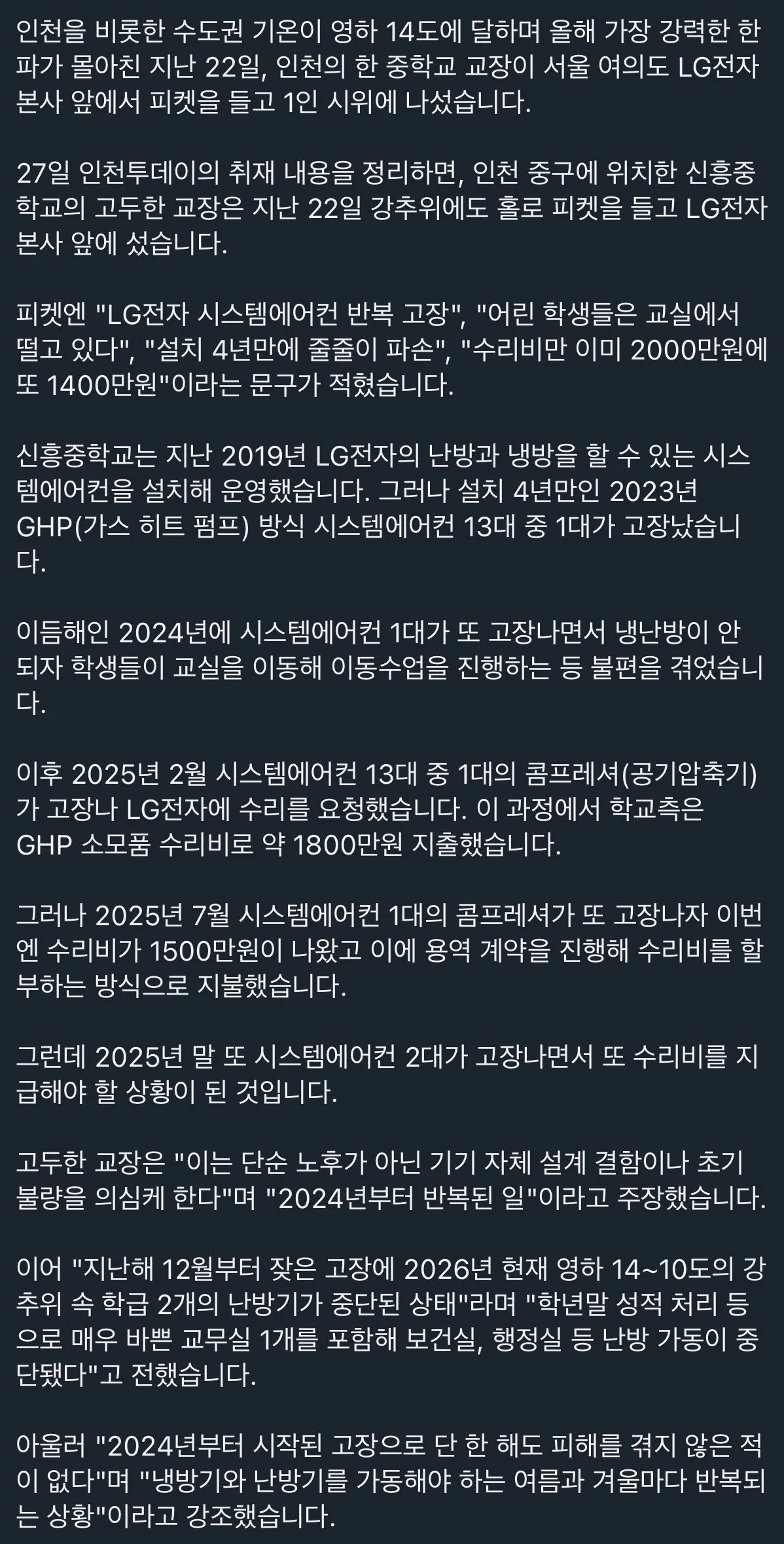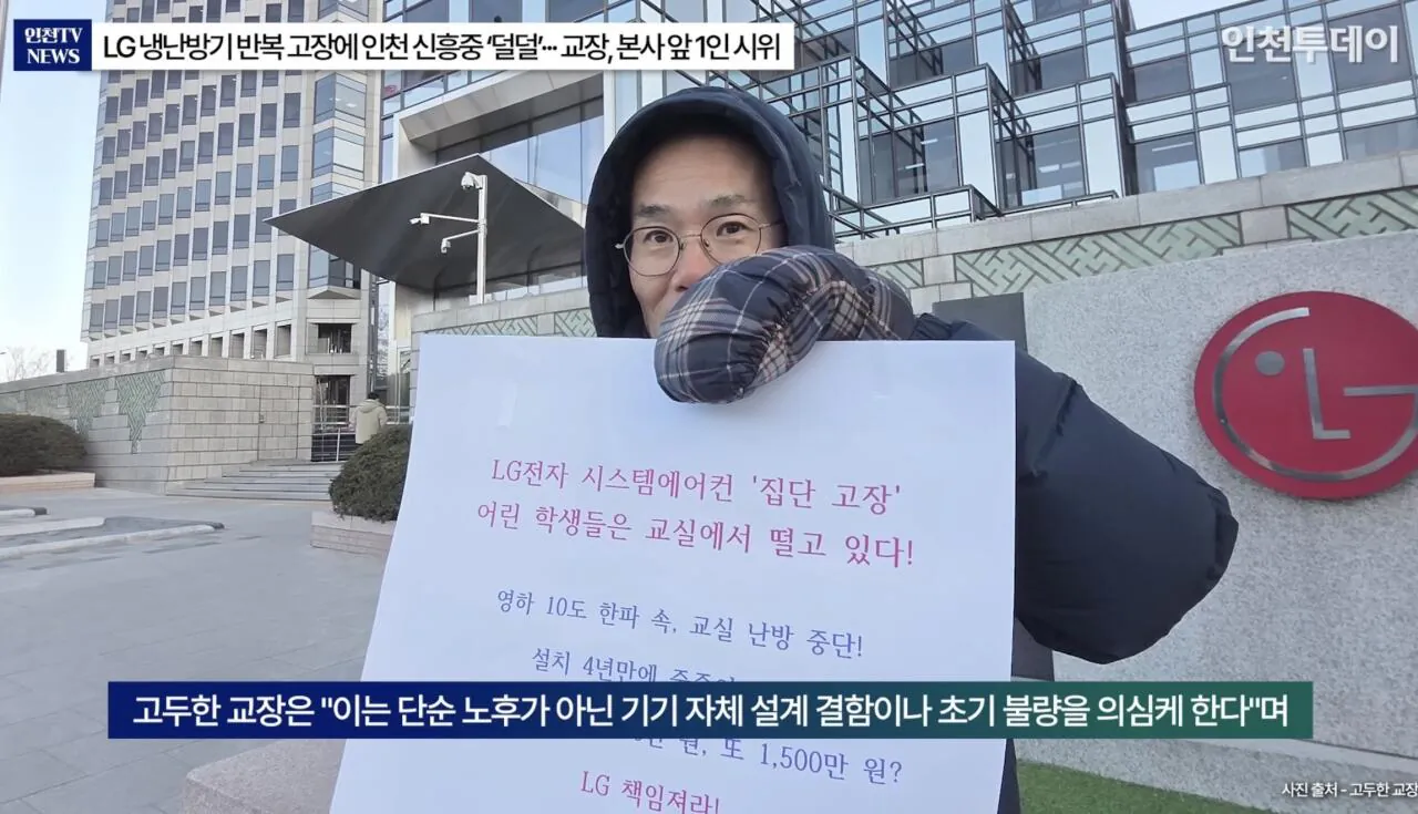 LG전자 본사 앞에서 1인 시위 중인 인천 중학교 교장