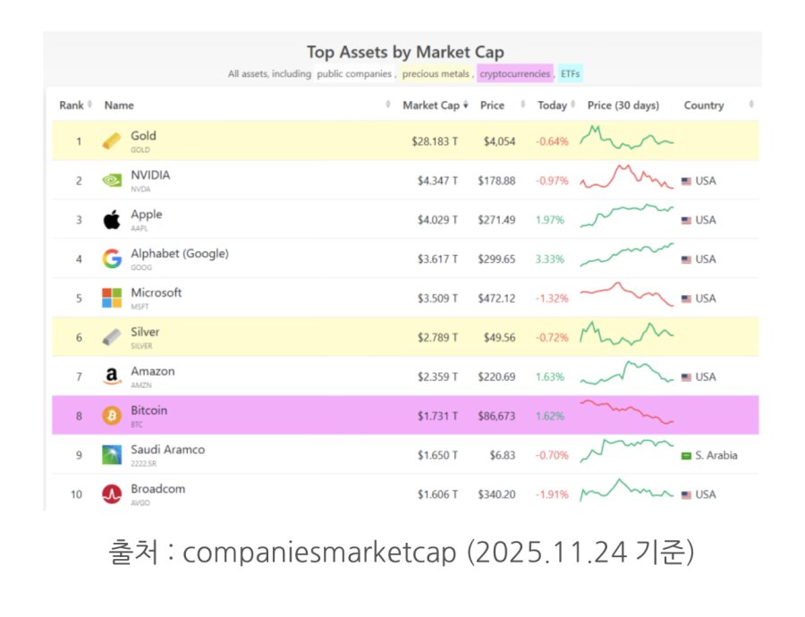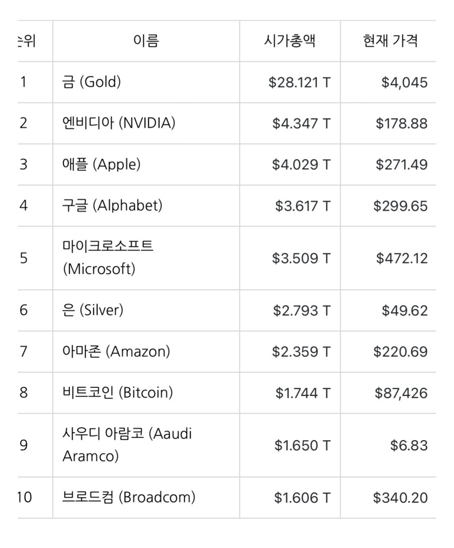 1위는 다들 아시다시피 금 gold
