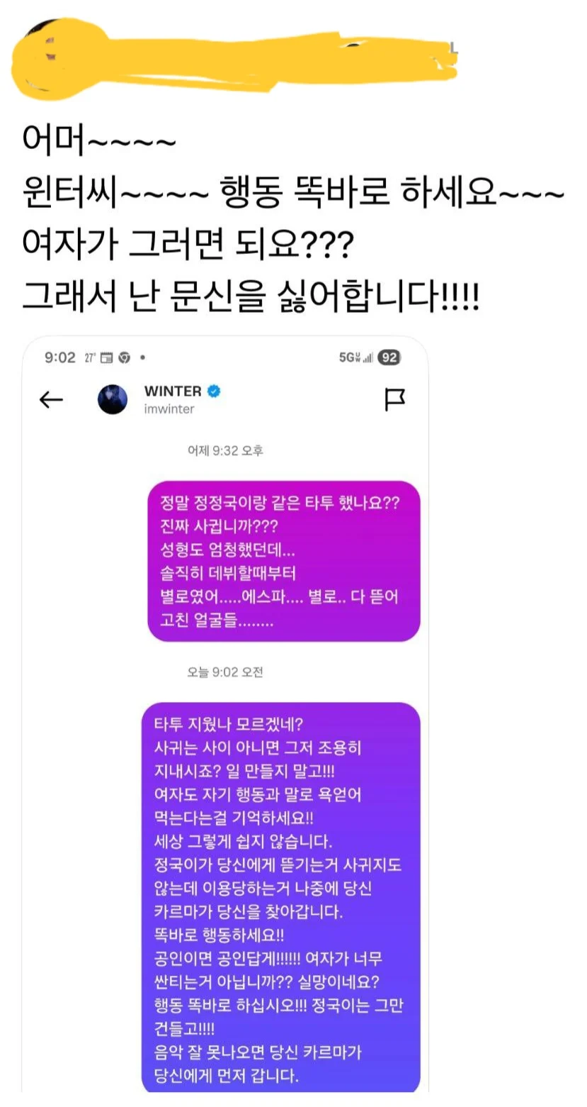 윈터문신과 정국문신은 종류가 다르다고욧!!
