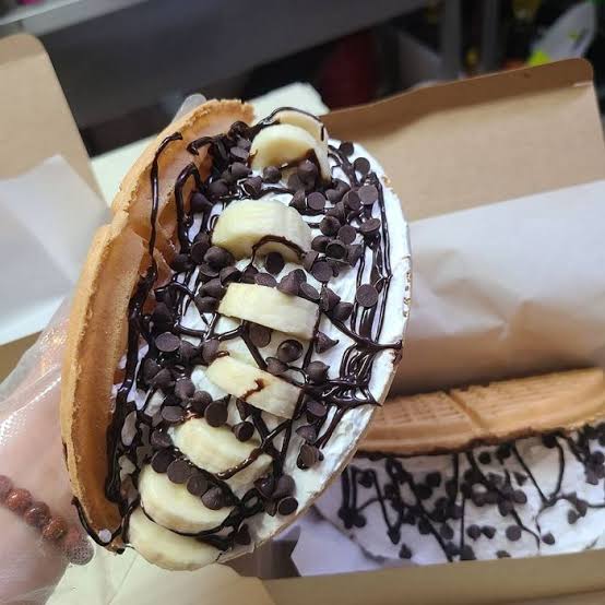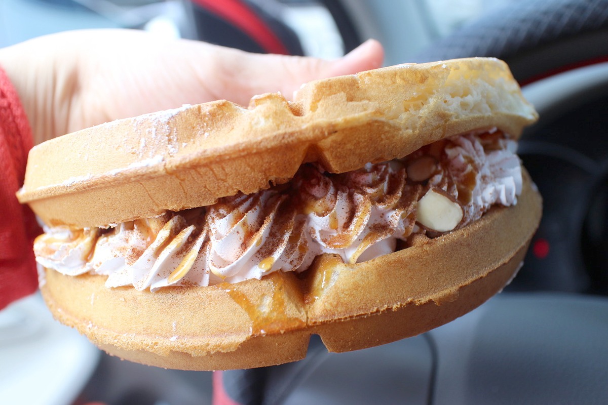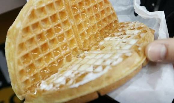 1. 얇은 빵에 생크림 얇게 바른 와플