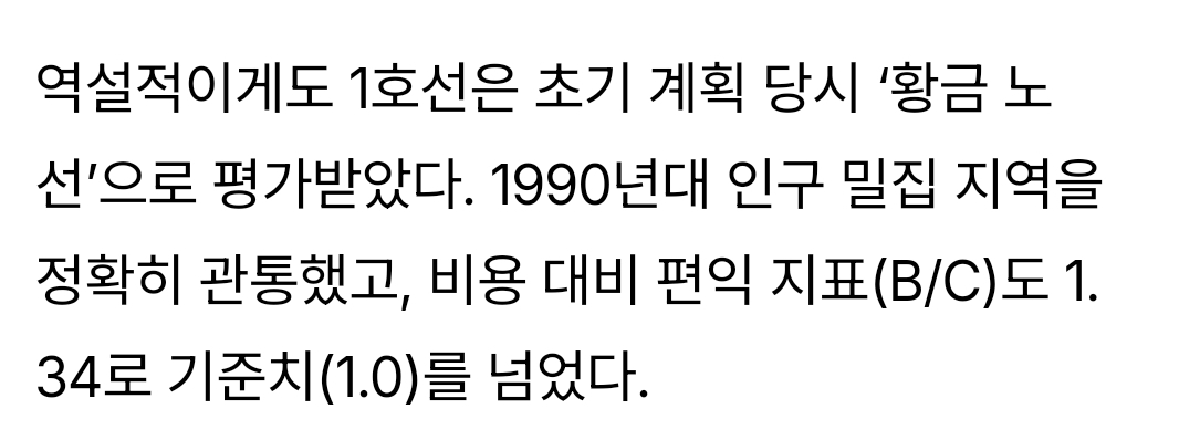 의외로 광주는 노선 설계당시에는 기준치 1.0을 넘는 1.3이였음