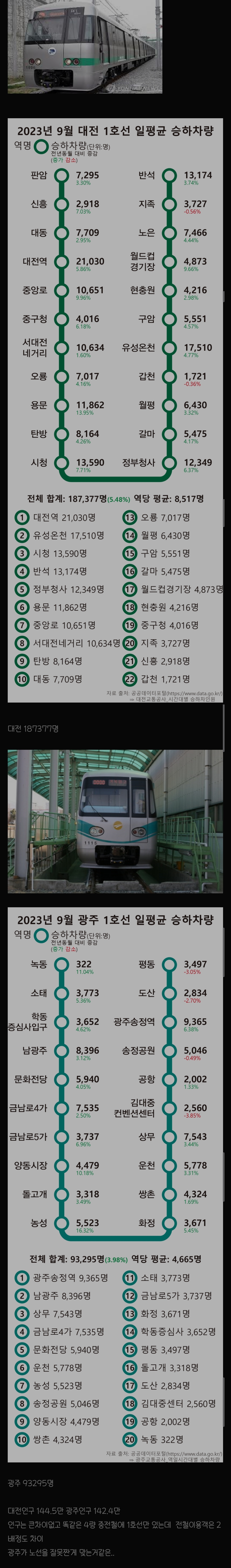인구는 차이없는데 이용객수 2배차이라는 대전vs광주지하철