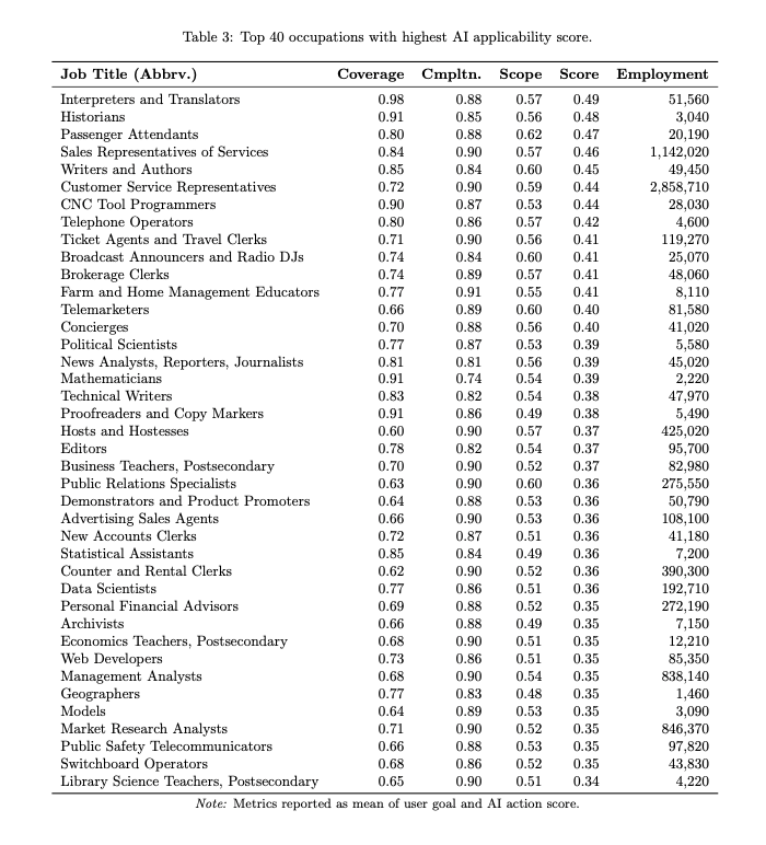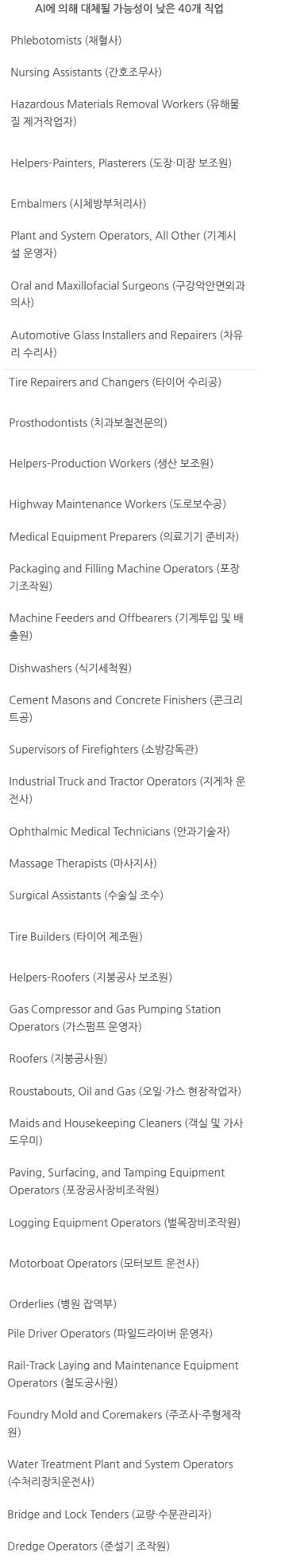마이크로소프트 선정 AI에 가장 먼저 대체될 직업 TOP40