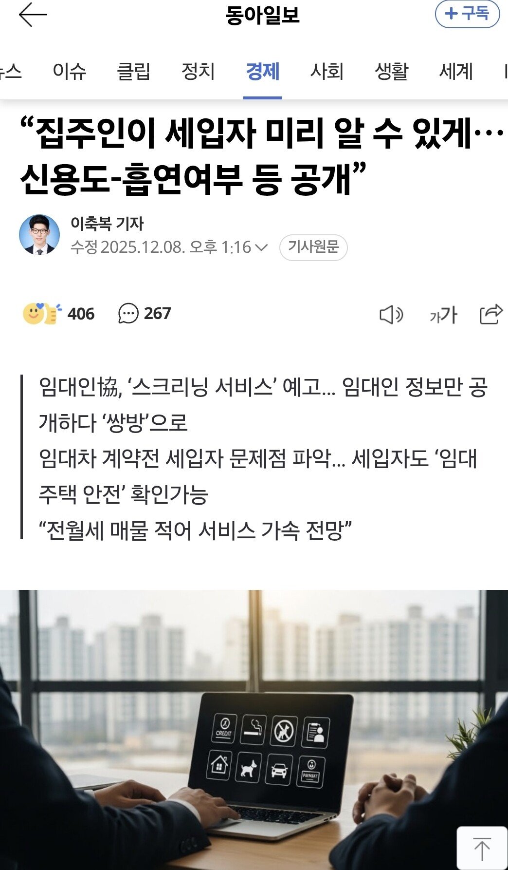 월세살려면 이제 신용도와 흡연여부등 공개