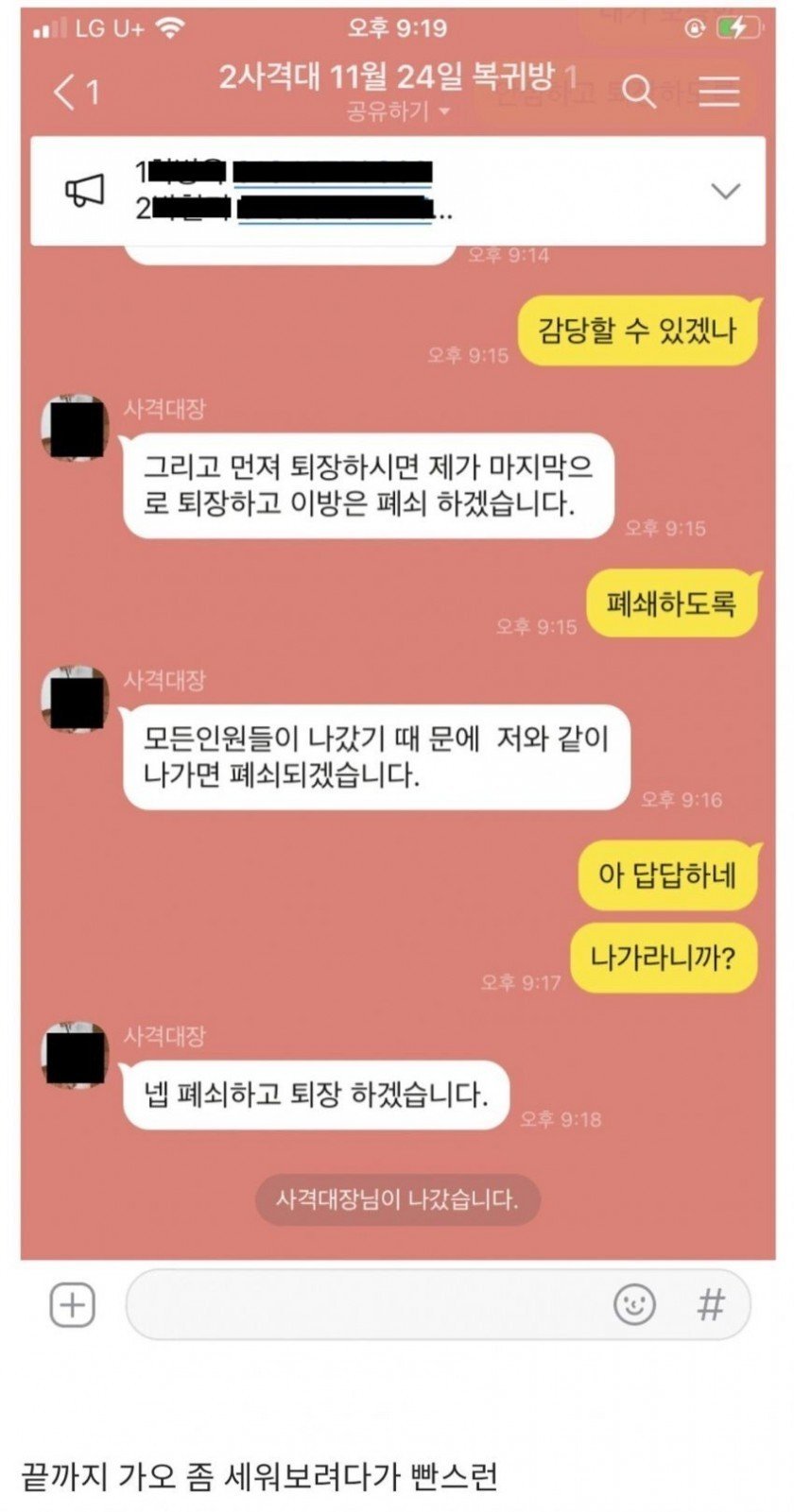 군부대 오픈카톡방에 난입한 디씨인의 결말