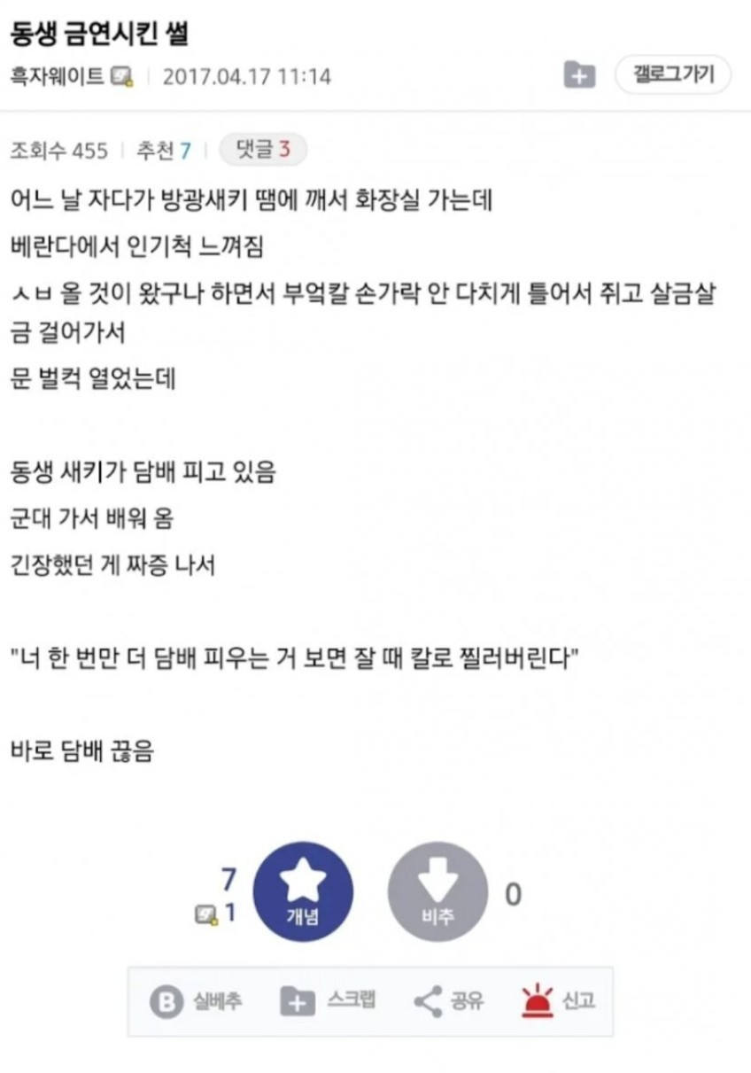 동생 담배 끊게한 형 논란