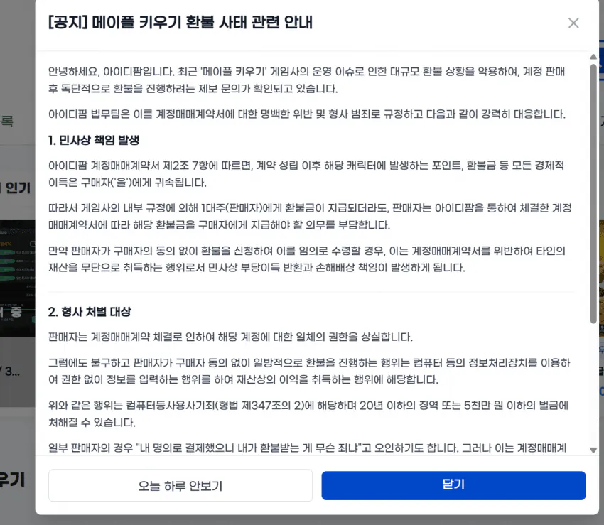 계정거래 사이트끼고 전자계약서 거래한 사람들은 하필 저 조항이 있는 이유로