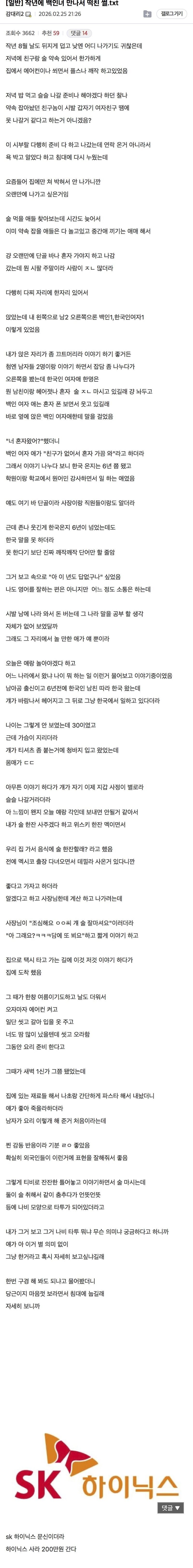 작년에 만난 백인여자랑 한 썰