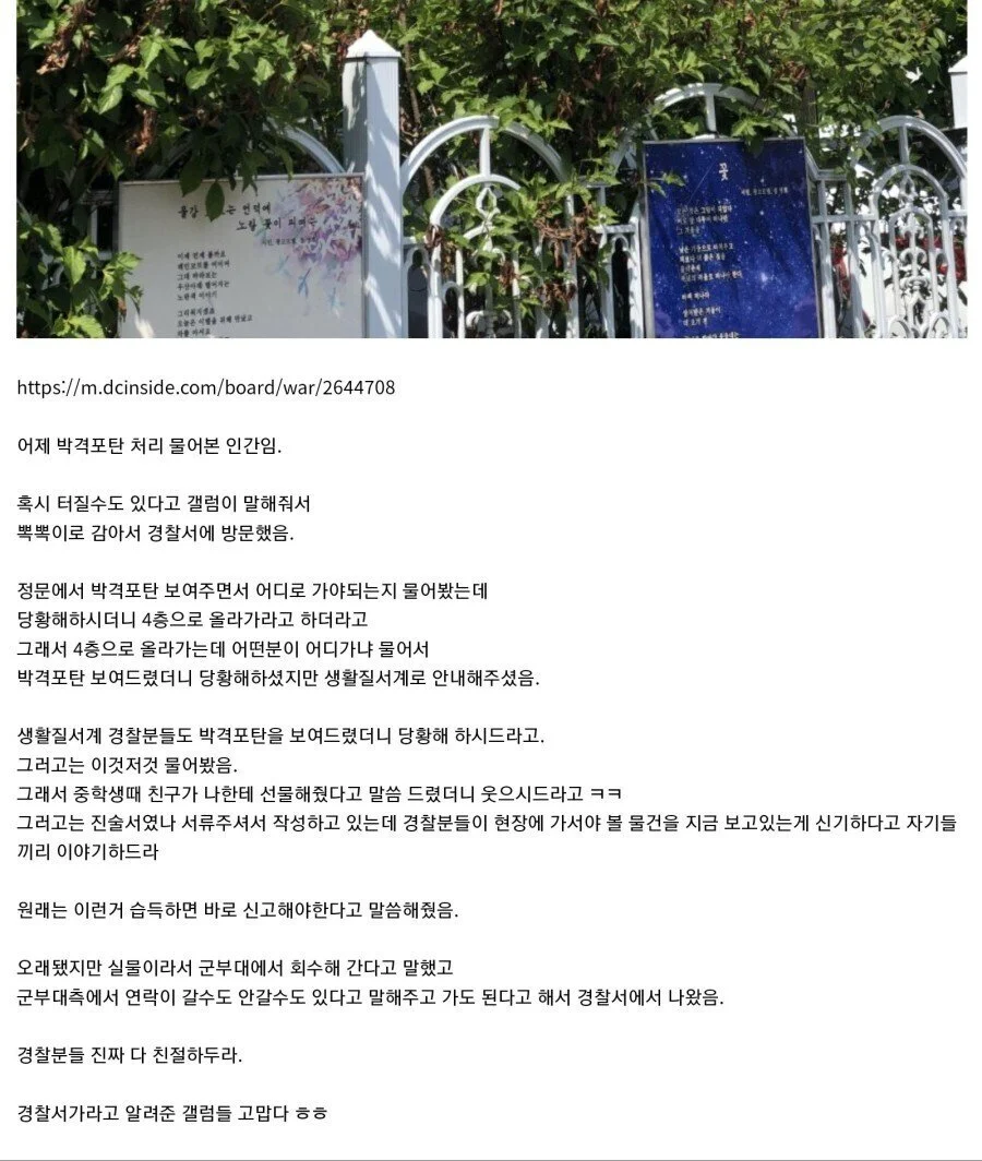 집에 있는 박격포탄 아랫부분 인증한 디시인 ㅎㄷㄷ