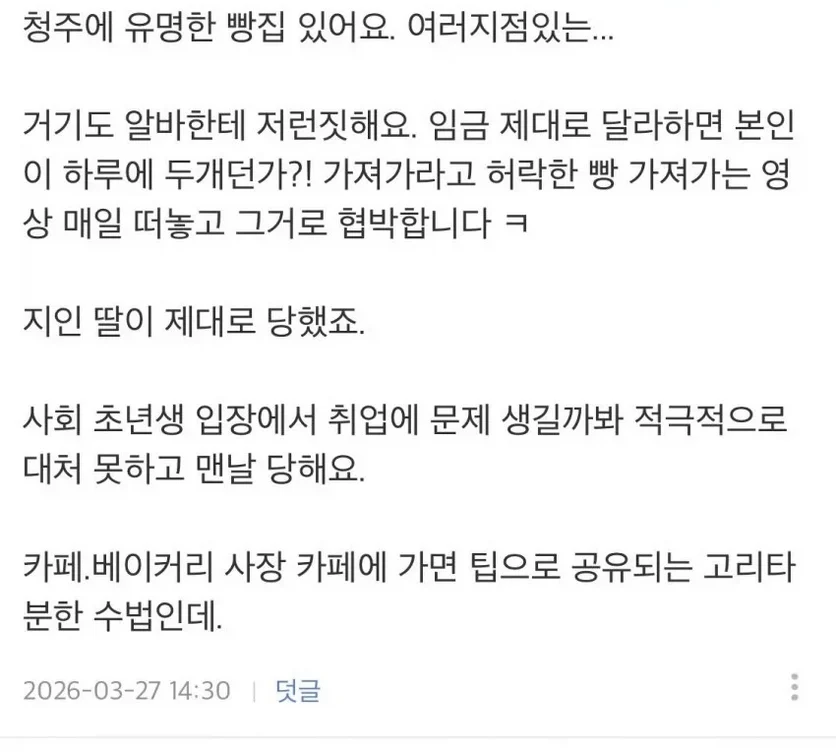 청주 알바 사건은 지역문제가 터질게 터진거라는 사람