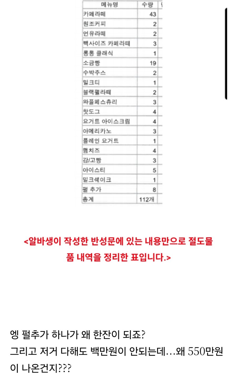 청주 알바생 고소 사건 법률대리인 횡령 금액 계산 방식