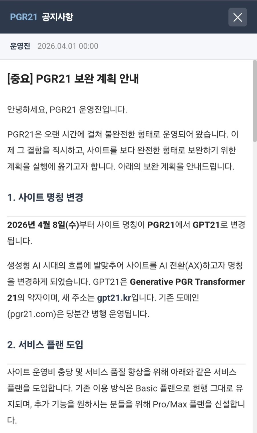 PGR21, 사이트 명칭 변경