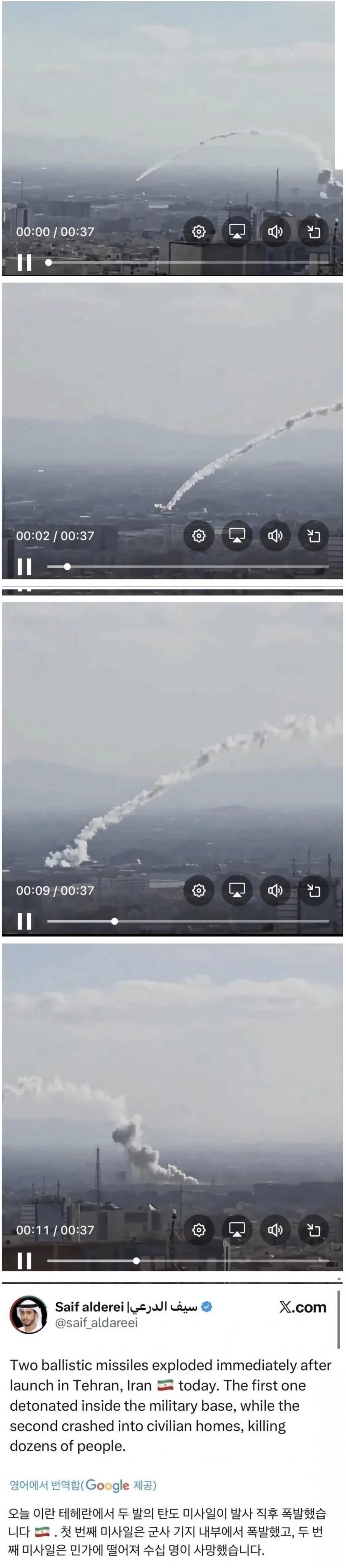 이란 탄도 미사일 발사 대참사 발생함
